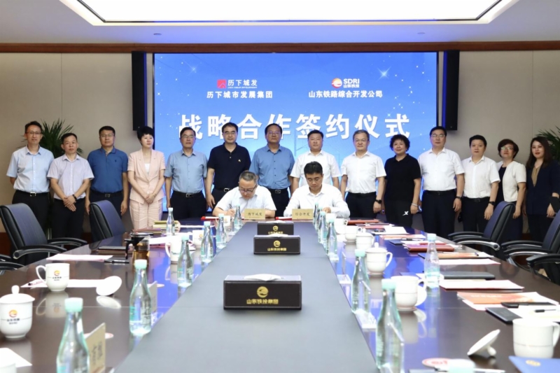 為更好發揮高鐵經濟牽引作用,加快產城融合,助力城市更新,9月14日,山東鐵路綜合開發有限公司與濟南歷下城市發展集團有限公司簽訂戰略合作協議。歷下區委書記楊傳軍,區委副書記、區長楊福濤,區委常委、副區長趙冬梅,山東鐵投集團黨委書記、董事長姜長興,黨委副書記、總經理王基全,副總經理竇玉碩,以及歷下區委、區政府,山東鐵投集團,濟南中央商務區管委會、歷下城發集團、綜合開發公司有關負責同志參加簽約儀式。