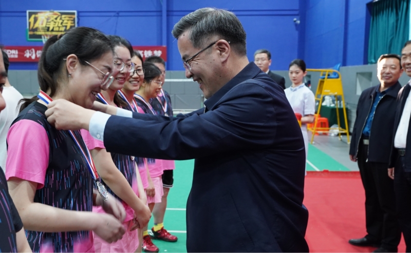 高燕在閉幕式上講話,向取得優異成績的代表隊表示祝賀,向所有運動員的奮勇拼搏、裁判員的公正評判、大賽組委會的精心組織、籌備組工作人員的默默奉獻表示贊揚和慰問。她強調,本屆羽毛球比賽是今年集團舉辦的第一場大型群眾性文體活動,各代表隊在比賽期間充分發揚“頑強拼搏、團結協作”的運動精神,賽出了水平,更賽出了風格,充分展示了鐵投人朝氣蓬勃、昂揚向上的精神風貌。希望大家在今后的工作和生活中,繼續發揚拼搏精神,以飽滿的熱情、昂揚的斗志,為集團高質量發展努力奮斗!隨后,高燕、竇玉碩等領導向各代表隊頒發了獎牌和獎杯,并與大家合影留念。