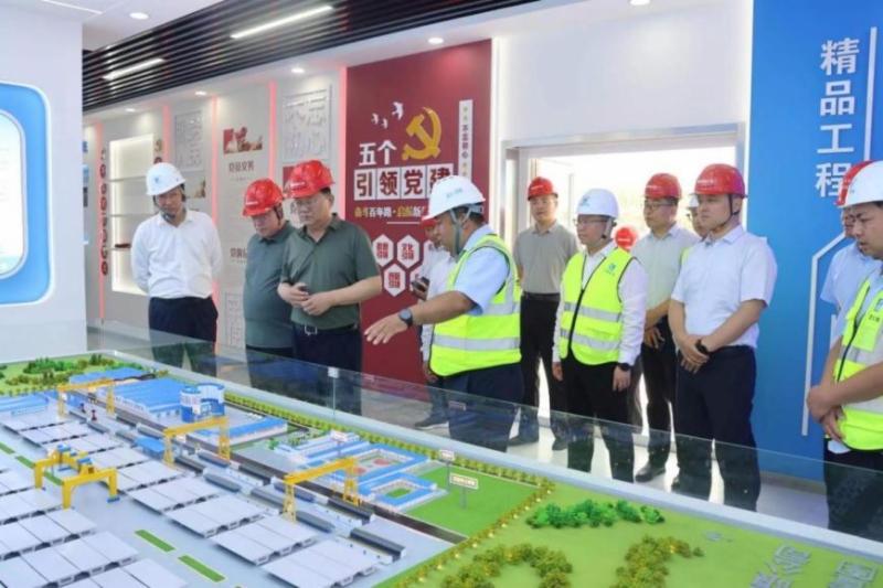 姜長興一行來到徒駭河北岸工點、濟陽智慧梁場、機場2#隧道施工現場現場調研,實地查看了智慧梁場系統運行及施工現場情況,聽取了參建單位有關匯報,與會人員就項目管理、企業治理、產業開發、資本運作等情況開展了交流。