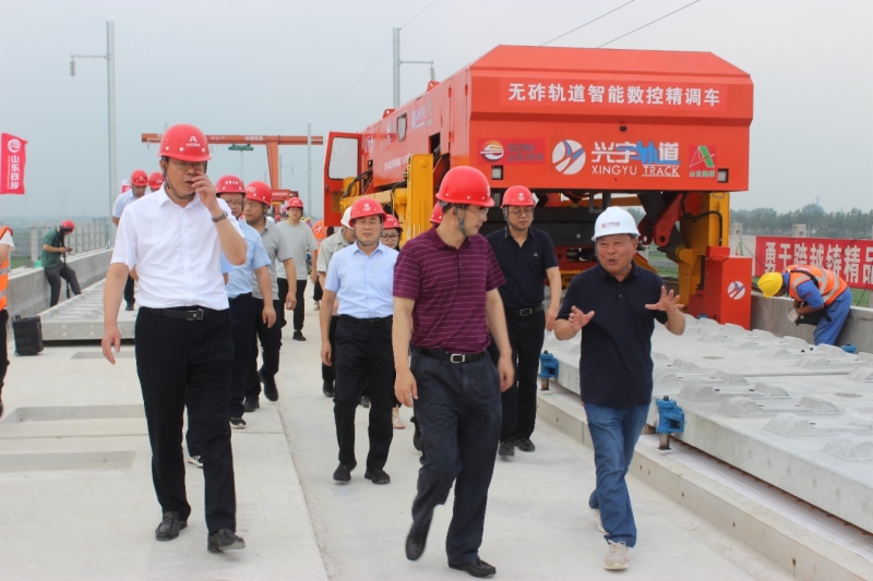 7月13日,山東鐵投集團黨委副書記、總經理王基全赴濰煙鐵路就“CRTSⅢ型無砟軌道智能施工技術與裝備”課題進展情況開展調研。