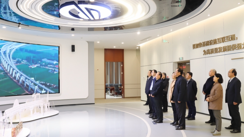 王修林一行參觀了集團展廳,全面了解當前山東高速鐵路網的建設情況,重點調研了山東鐵路智能化建設管理平臺的運行情況。姜長興介紹了集團基本情況,匯報了集團高鐵建設管理、投融資、科技創新、綜合開發等方面工作,以及未來一段時期山東高鐵重點線路的規劃情況。