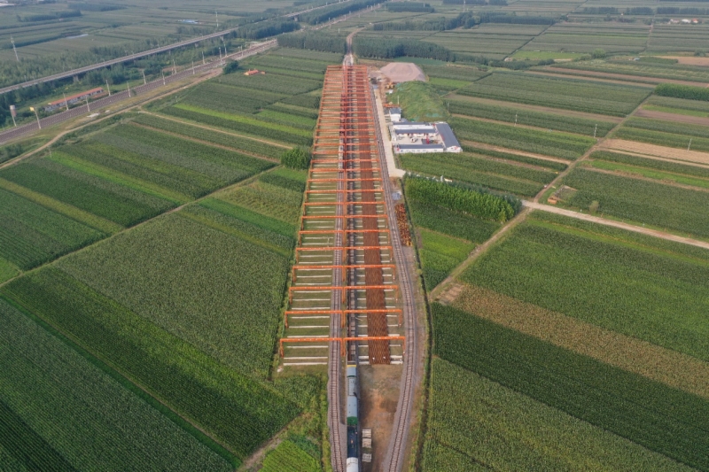 萊榮高鐵馬格莊鋪軌基地2022年6月份正式開始籌建,當年8月26日具備長鋼軌存儲條件。基地線路全長6.3公里,設2個長軌存放區,可存放長軌400余公里。