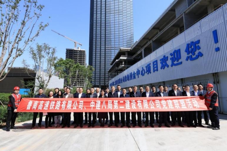 4月26日,魯南高鐵公司組織黨員來到綠地山東國際金融中心項目建設現場,與中建八局二公司共同開展了黨建共建暨“登齊魯之巔,懷赤色匠心,做魯南尖兵”主題黨日活動。魯南高鐵公司黨委副書記、總經理孫韶峰,黨委副書記、監事會主席、工會主席王清村;中建八局山東分局副局長靳慶玉,二公司副總經理苑玉振,黨委副書記、工會主席張慧,基礎設施公司黨總支書記、總經理呂士東,山東公司黨總支副書記、執行總經理高騰等參加活動。