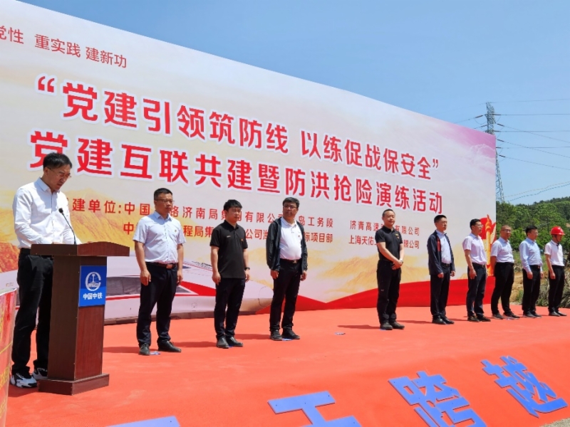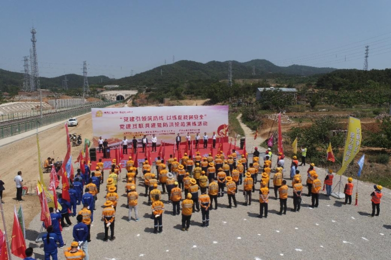 為貫徹落實主題教育“學思想、強黨性、重實踐、建新功”的總要求,深入堅持黨建引領,切實提升防汛應急搶險能力,傳承發揚2022年臺風“梅花”過境時形成的搶險經驗,有效應對汛期突發災害,保障在建濰煙高鐵和鄰近運營鐵路線安全,5月23日,濟青高鐵公司聯合濟南局集團青島工務段、站前6標中鐵上海局、監理7標上海天佑在濰煙高鐵煙臺上行28號路基開展2023年防汛應急演練。
