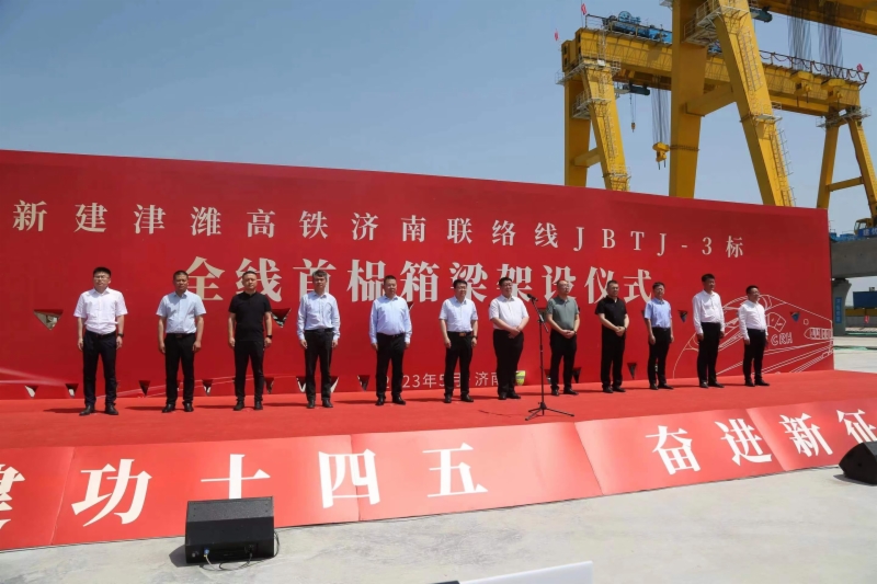 濟(jì)濱高鐵是山東省重點(diǎn)建設(shè)項(xiàng)目,是山東省快速鐵路網(wǎng)魯北通道和濟(jì)南都市圈城際鐵路網(wǎng)的重要組成部分,項(xiàng)目批復(fù)工期4年,設(shè)計(jì)時(shí)速350公里,正線全長(zhǎng)145.3公里,其中濟(jì)南境內(nèi)90.5km,濱州境內(nèi)54.8km。新建橋梁129.3km/7座,隧道7.7km/2座。橋隧總長(zhǎng)占線路總長(zhǎng)度94.08%。全線預(yù)制架設(shè)雙線箱梁3500孔,單線箱梁118孔,截至目前,全線已預(yù)制箱梁103榀,通過(guò)架梁機(jī)全線一天平均完成9孔箱梁架設(shè),預(yù)計(jì)2025年5月底前全部完成箱梁架設(shè)任務(wù)。2025年8月全面轉(zhuǎn)入鋪軌階段,2026年3月完成全線鋪軌施工,計(jì)劃2026年9月底前具備通車條件。