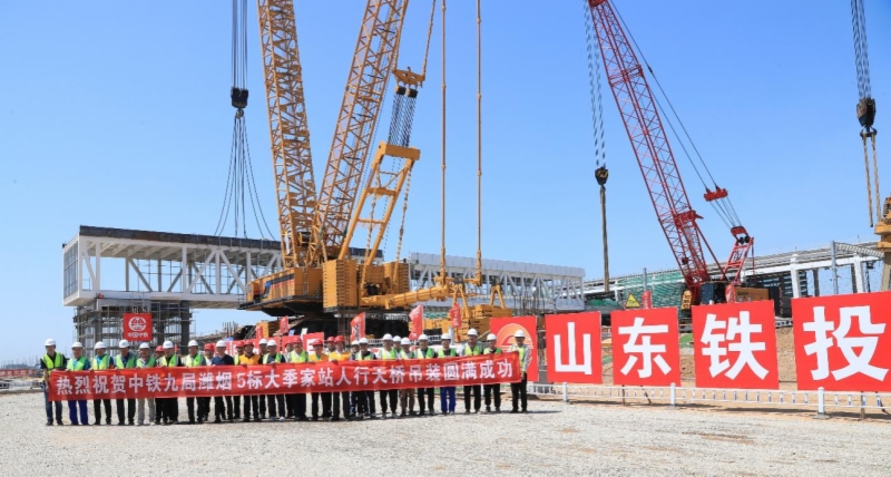 6月22日下午,隨著最后一節長43米、重385.9噸的鋼桁架旅客天橋平穩落定,由山東鐵投集團濰煙高鐵公司投資建設的濰煙高鐵煙臺西站旅客天橋營業線施工吊裝作業順利完成,實現了濰煙高鐵站臺和龍煙鐵路市域化站臺旅客通道的連通,標志著煙臺西站站場、站房施工基本完成,工程進入沖刺收官階段。
