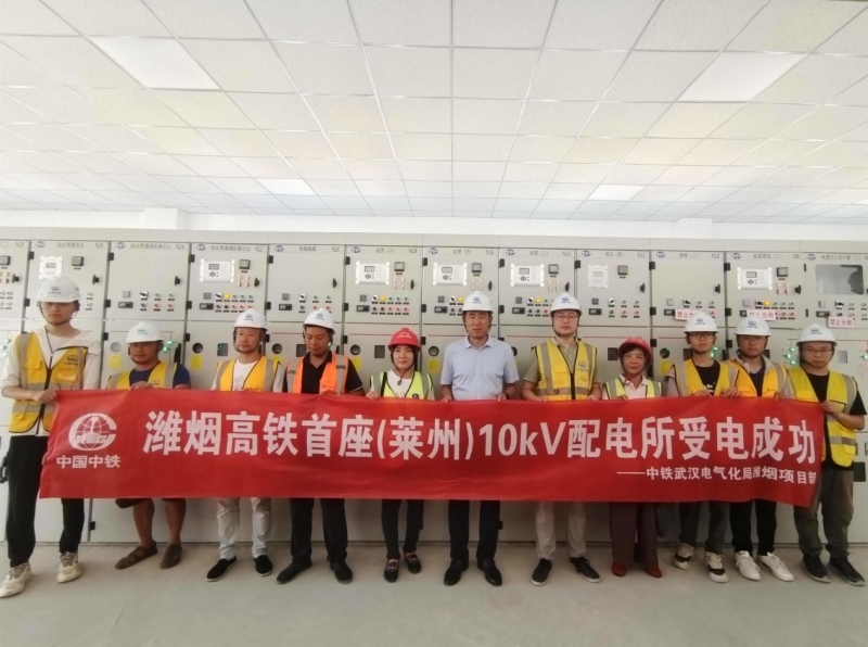 與此同時(shí),在萊州站10KV配電所,施工人員相繼完成了電纜耐壓試驗(yàn)、所內(nèi)設(shè)備電氣試驗(yàn)、進(jìn)線核相等操作,一次倒閘受電成功。萊州10KV配電所分別接引自國(guó)家電網(wǎng)35KV神堂變電站和110KV石都變電站兩路進(jìn)線,外電源施工采用架空和高壓電纜混合線路方式。