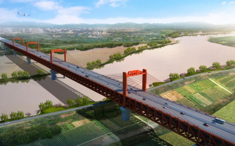 濟陽黃河公鐵兩用特大橋作為濟濱高鐵的控制性工程之一,大橋連接濟濱高鐵遙墻機場站與濟陽站,全長13.8公里,其中公鐵共建段主橋全長1178米,主橋橋跨布置為(84+144+228+240+300+120+60)m。大橋建成后,將是目前世界上跨度最大的塔梁固結、塔墩分離體系公鐵合建矮塔斜拉橋。