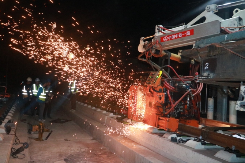 為全面提高軌道鎖定質量和安全管理水平,中鐵一局投入使用了國內先進的UN150ZB1大型移動閃光焊軌機、中頻數控電正火機、焊頭精磨機等自動化工裝設備和新技術,實現了焊軌施工智能化、信息化、專業化和綠色化,大幅提升了軌道質量,確保后期線路運行的平穩性和旅客乘坐舒適度。
