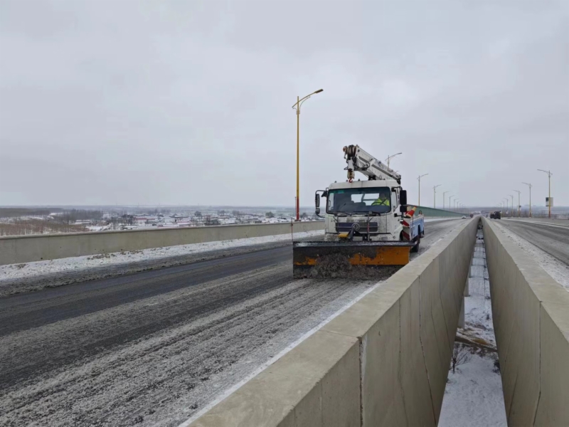 本次除雪防滑保暢共出動人員70余人次,融雪劑撒布車、鏟雪車、保障巡查車等機械設備26臺次,撒布融雪劑6噸,保證了除雪應對工作快速有序推進。
