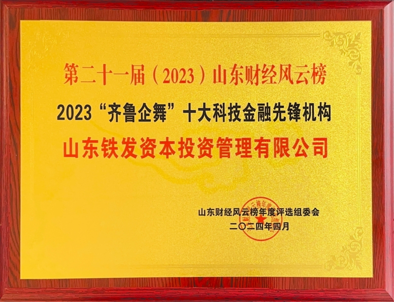 4月28日,由大眾報業集團(大眾日報社)主辦,山東財經大學、山東省宏觀經濟研究院、山東省互聯網傳媒集團、《經濟導報》社聯合承辦的“第二十一屆(2023)山東財經風云榜”發布,山東鐵發資本投資管理有限公司榮膺“2023‘齊魯企舞’十大科技金融先鋒機構”。