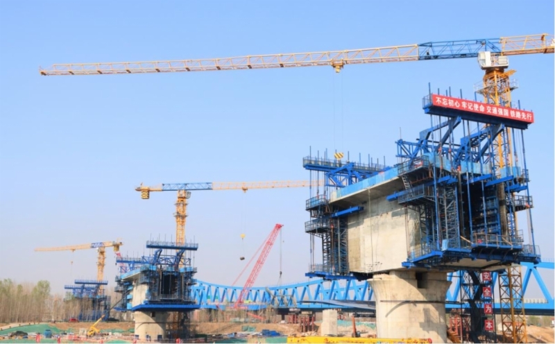 該特大橋是連接濟(jì)南東站與遙墻國際機(jī)場的重要鐵路運(yùn)輸通道,跨越青銀高速、濟(jì)廣高速、京滬高速、機(jī)場樞紐等多條高速公路,施工難度大、技術(shù)標(biāo)準(zhǔn)高。為確保順利完成澆筑,濟(jì)濱高鐵公司組織項(xiàng)目部,嚴(yán)格落實(shí)方案評審制度,對工程重難點(diǎn)進(jìn)行多次論證,確保施工工藝質(zhì)量。