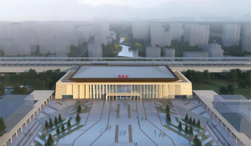 惠民站設(shè)計以“兵圣故里,雄闊惠民”為概念,車站設(shè)兩座凈寬10m的進、出站通道,兩座長450m,寬12m漸變至9.05m的島式站臺,線側(cè)下式站型,雨棚覆蓋面積10547㎡,站房點建筑面積為9987㎡,建筑層數(shù)主體建筑地上一層,兩側(cè)局部設(shè)置二層夾層,地下局部一層。建筑總高度為23.45m,最高聚集人數(shù)為800人,站房主體結(jié)構(gòu)計劃2025年6月完工。