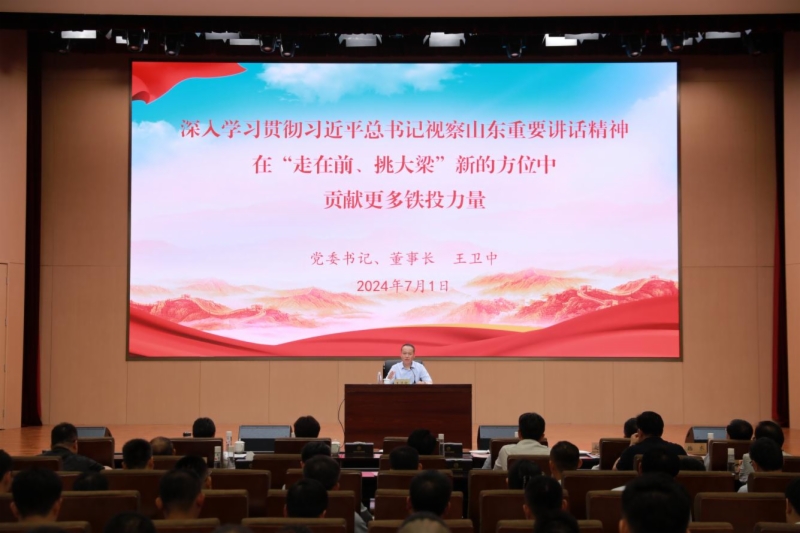 集團黨委書記、董事長王衛中強調,要把深入學習貫徹習近平總書記視察山東重要講話精神作為重大政治任務,與學習貫徹總書記歷次視察山東重要講話和對山東工作的重要指示批示要求結合起來進行系統學習、一體落實。要深刻領會把握總書記對山東發展的總定位、新要求,緊緊圍繞“全國一流的鐵路事業綜合發展集團”愿景,展現鐵投擔當、彰顯鐵投地位、提升鐵投品牌,以實際行動堅定擁護“兩個確立”、堅決做到“兩個維護”。